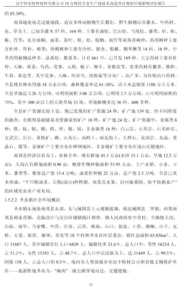 項目實施單位:漢中鋅業有限責任公司 評估報告編制單位:西安建筑科技大學