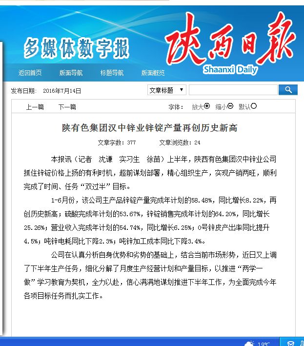 陜西日報:陜西有色漢中鋅業(yè)鋅錠產(chǎn)量再創(chuàng)歷史新高