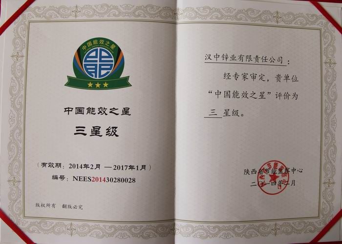 在6月12日由陜西省發改委環資處組織召開的“能效之星”表彰、授牌儀式上,公司被授予陜西省2013年度“能效之星”三星級企業稱號。