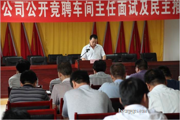 劉朝斌總經(jīng)理在會(huì)上指出,公開競(jìng)聘車間管理干部,是公司實(shí)施人才興企戰(zhàn)略,推進(jìn)選人用人機(jī)制創(chuàng)新的重要舉措。劉總要求各評(píng)委和民主推薦人員認(rèn)真負(fù)責(zé)地做好評(píng)審和推薦工作,確保此次競(jìng)聘圓滿完成;競(jìng)聘人員要充分發(fā)揮,盡量把自己的水平展示出來(lái)。