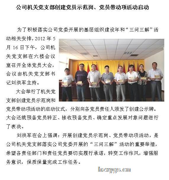 公司機關黨支部創建黨員示范崗、黨員帶動項活動啟動